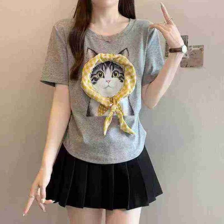 上新全清:9.9一件多巴胺甜美减龄小猫印花设计感T恤,...