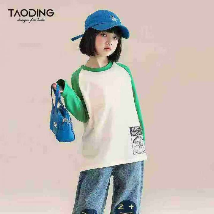 2025新款女中大童休闲时尚拼接上衣潮长袖,数量2000件左右,码数110--160,整款两个色,前后印花,后领包边,独立包装带吊牌