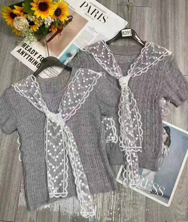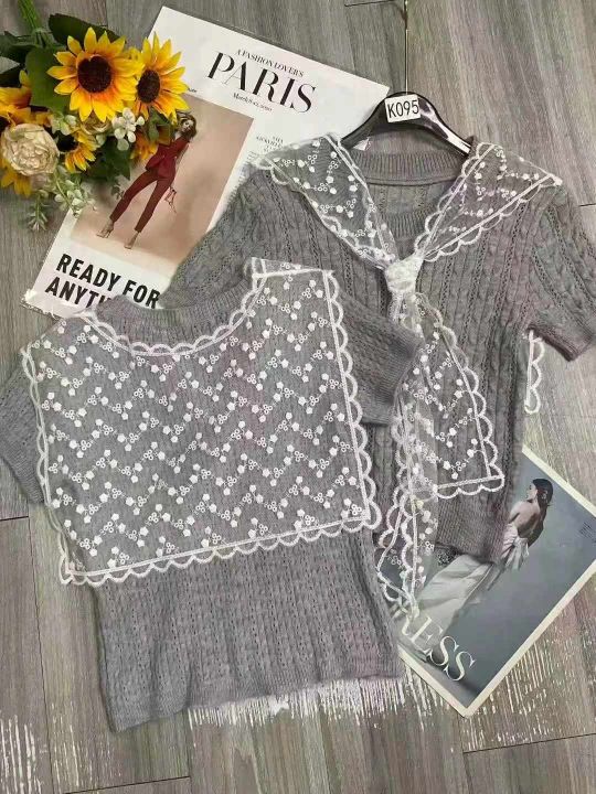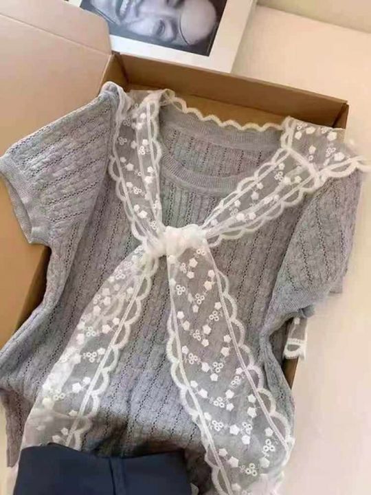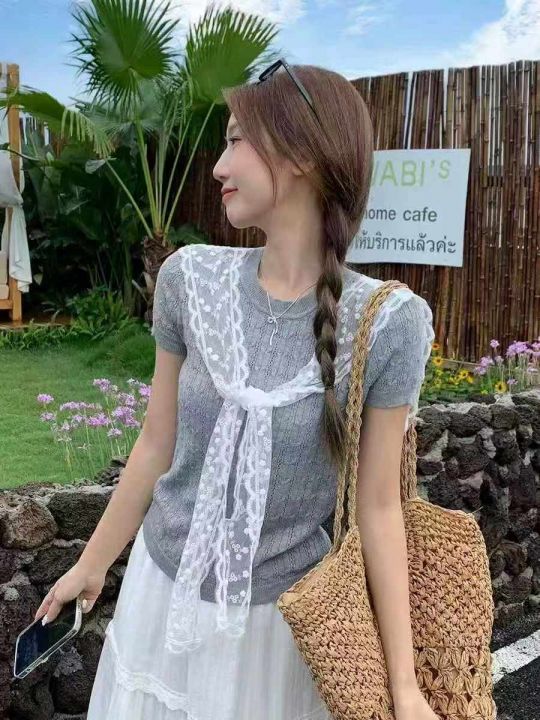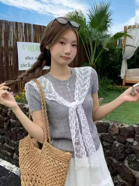 夏季新款学院风圆领针织t恤+韩系超好看高级甜美俏皮蕾丝披肩2件套,独立包装,均码面料柔软舒适弹力大,100套左右,全清6.9元超低价秒杀!