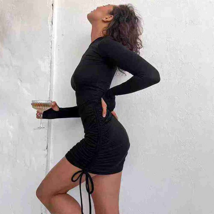 全清5.8性感抽绳遮肚显瘦减龄包臀长袖连衣裙 数...