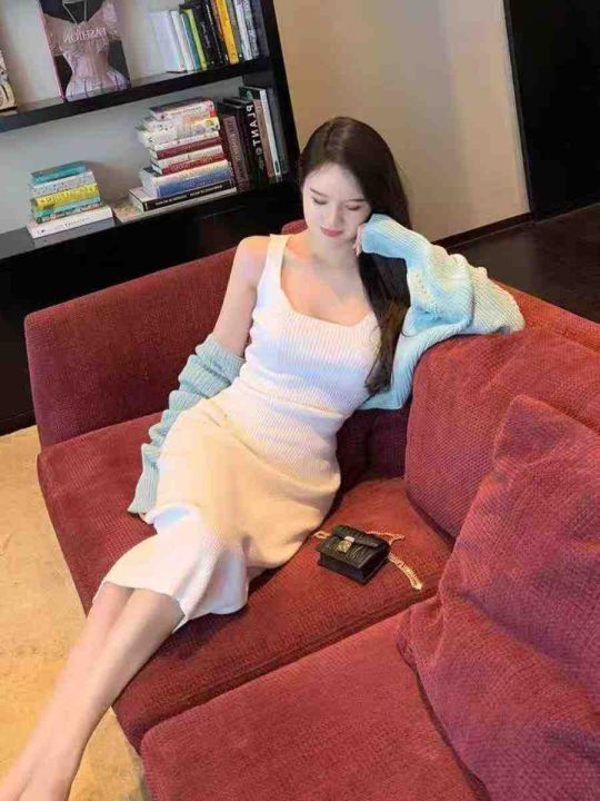 秋冬新款弹力修身显瘦名媛小香风奶甜系穿搭法式毛衣吊带针织连衣裙,独立包...