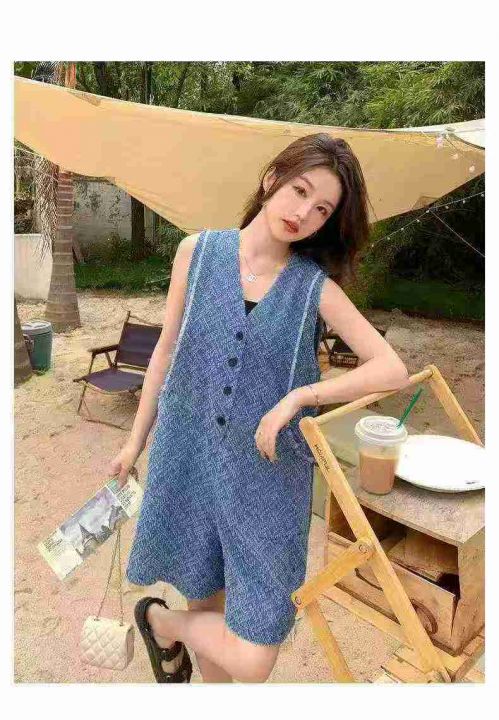 上新全清:12.8一件韩版宽松显瘦V领牛仔设计感连体短裤,[爱心]65件左右,...