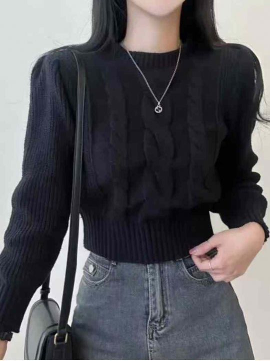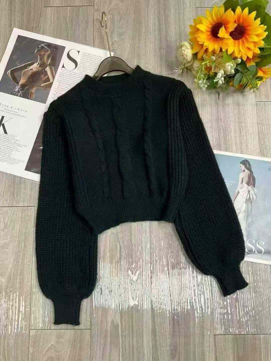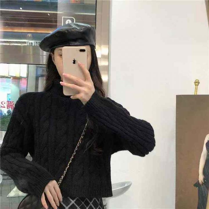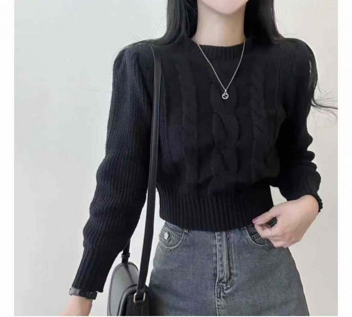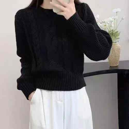 秋冬新款复古螺纹麻花加厚短款宽松套头毛衣,独立包装...