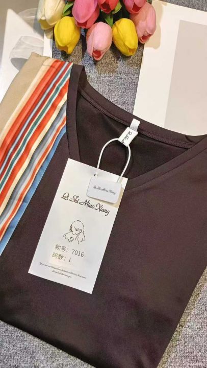 洋气insV领小众设计百搭显瘦咖色T恤,170件左右,款号#7016,码数S-2XL,可穿80-140斤,工厂原包装无瑕疵,分货加一