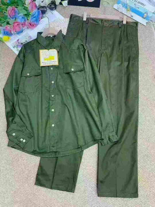 男装洗水棉工装长袖衬衫套装,数量:1700套,码数:(上衣码:L-裤子码30-32)-(上衣码XL-裤子码34-36-38),有独立包装,14.9元清