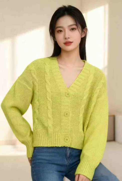 秋冬麻花编织V领显瘦开衫针织衫毛衣小外套,独立包装...