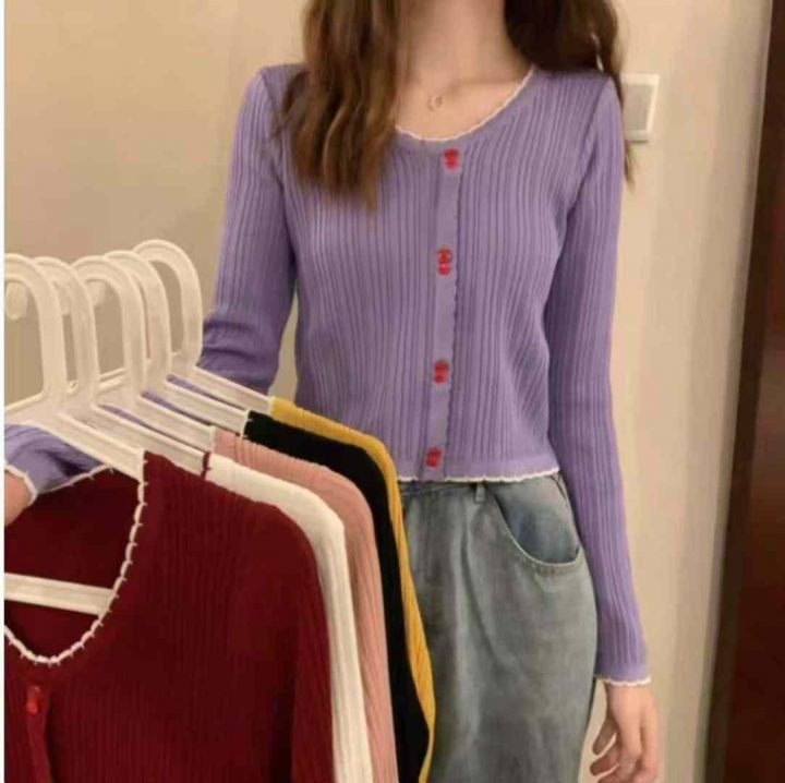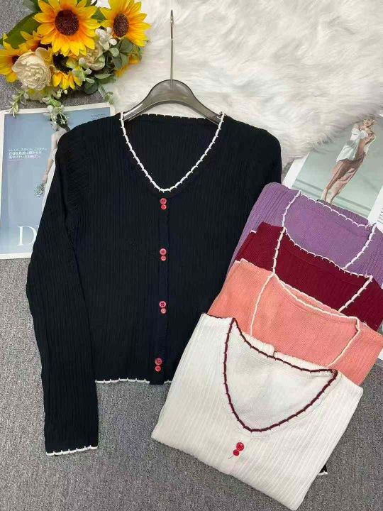 秋季新品法式小众复古设计感V领单排扣针织长袖T恤,独立包装,面料柔软舒适弹力大,图一颜色为主,400件,全清6.9元超低价秒杀!分货加一!