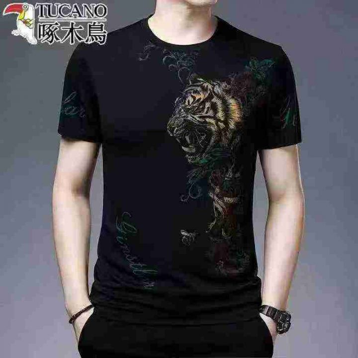 夏季男士短袖T恤印花圆领冰丝上衣中潮流体恤,几个花...
