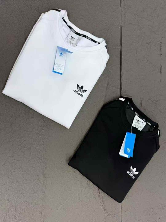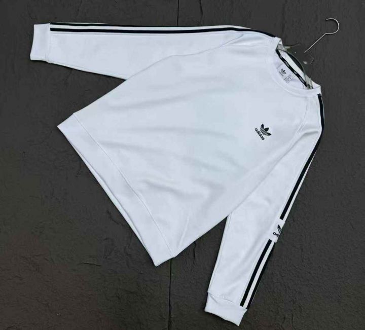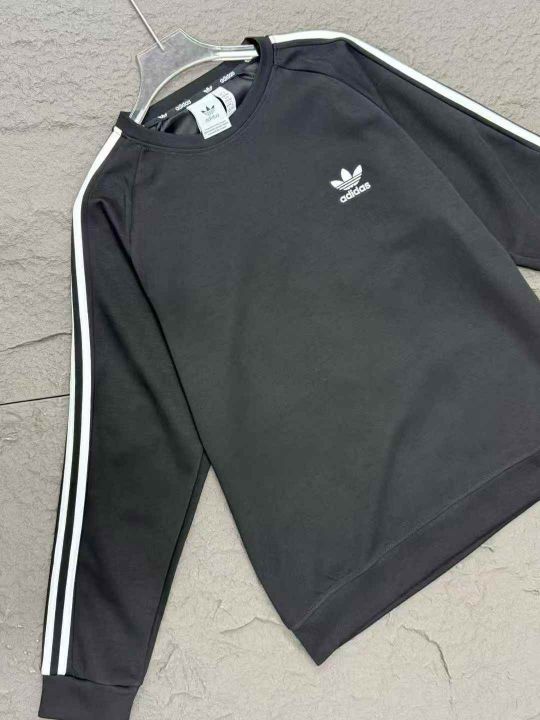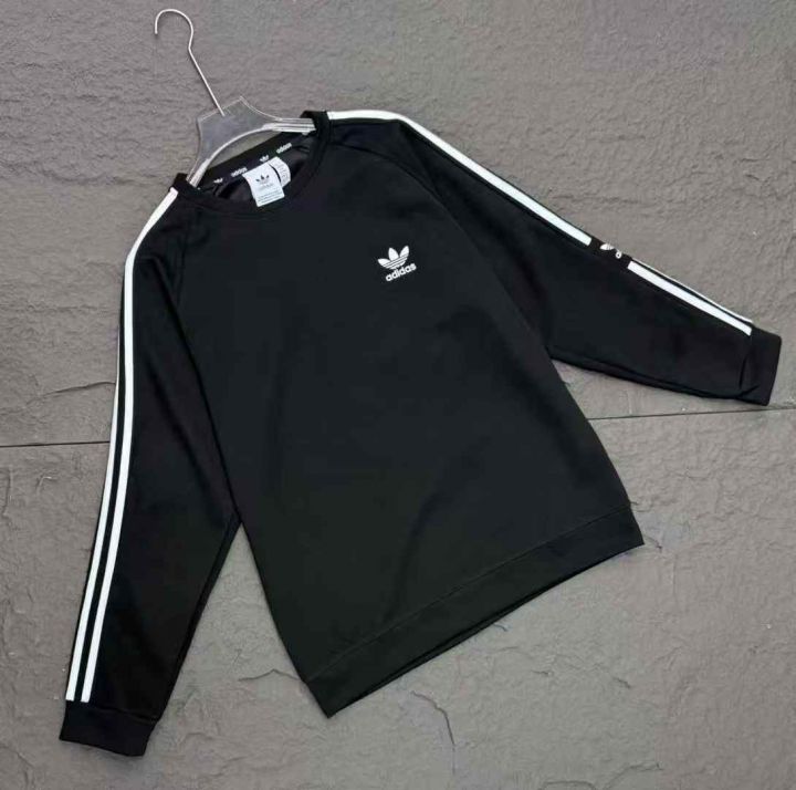 adidas阿迪达斯三叶草卫衣双刺绣2025复古宽松纯棉三条杠圆领卫衣 s-3xl 黑色 白色 50起配!低价配货