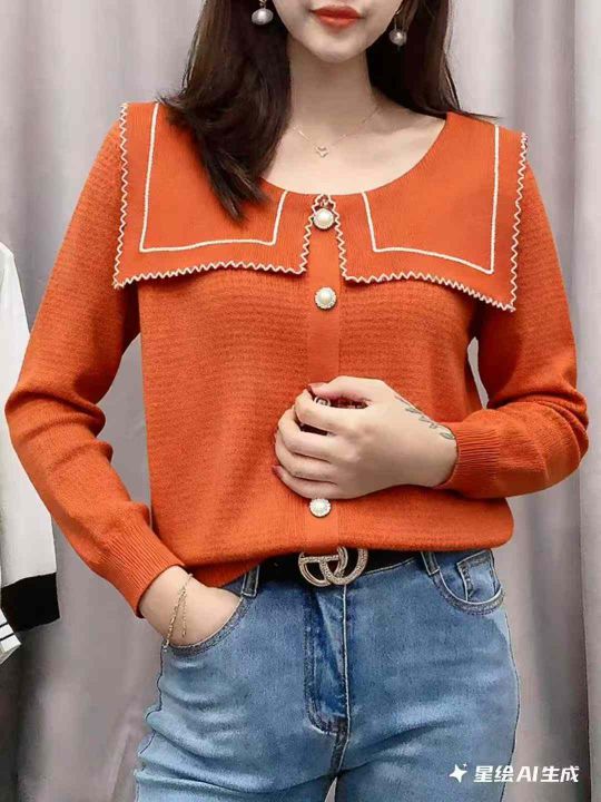 秋季新品小香风单排扣翻领套头毛衣,独立包装,均码面料软糯舒适弹力大,72件,全清8.9元超低价秒杀!