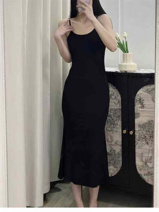 早秋新款性感辣妹弹力修身显瘦黑色包臀鱼尾吊带针织连衣裙,独立包装,均码面料柔软舒适弹力大,110件左右,全清7.9元超低价秒杀!
