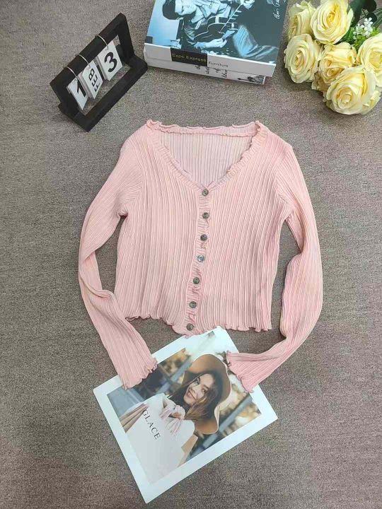 2025新款韩版百搭木耳边短款长袖针织开衫外套,独立包装,五个颜色,830件左右,清7.5,分➕1