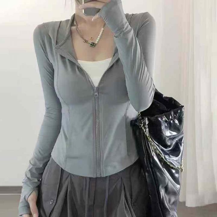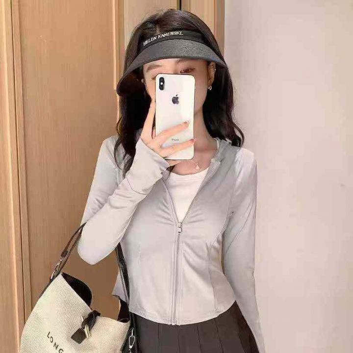 修身瑜伽服拉链开衫连帽外套瑜伽上衣,两个色,大货黑...