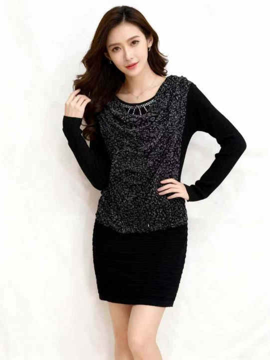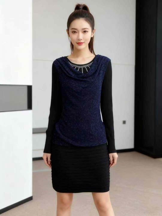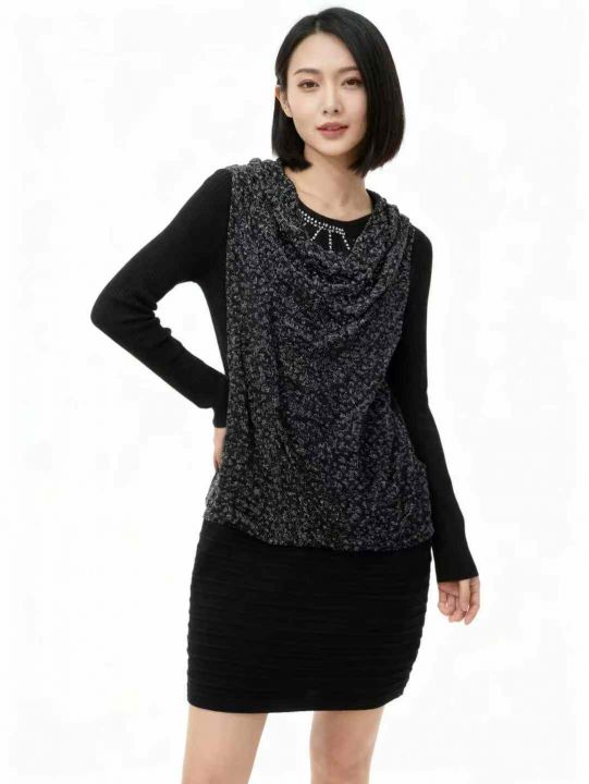 时尚堆堆领百搭设计感套头钉珠针织连衣裙,独立包装,...