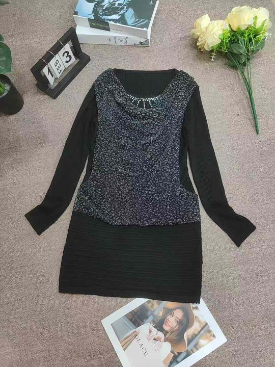时尚堆堆领百搭设计感套头钉珠针织连衣裙,独立包装,均码,470件,清7.5,分➕1
