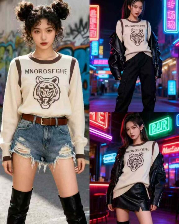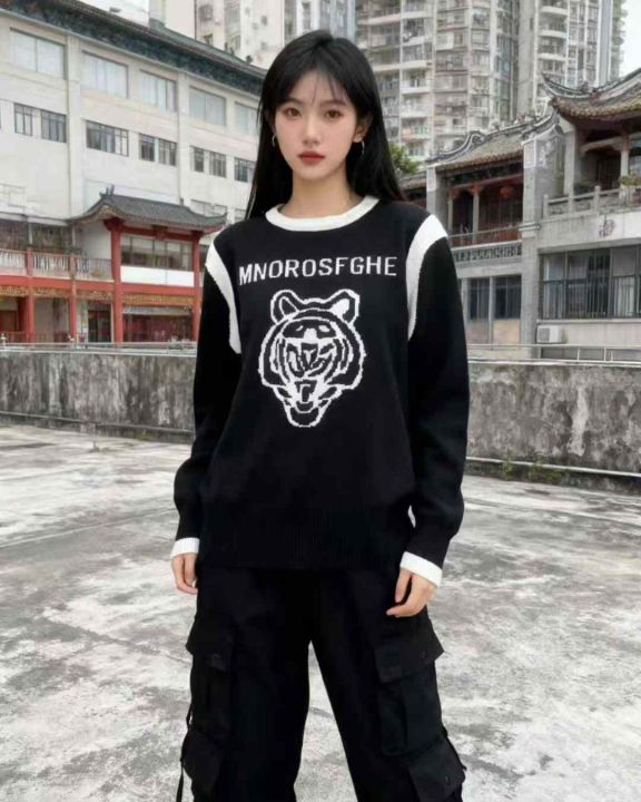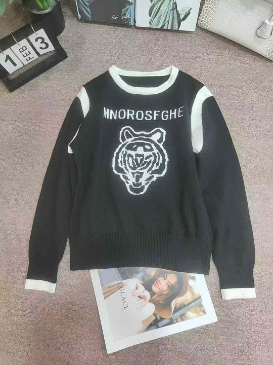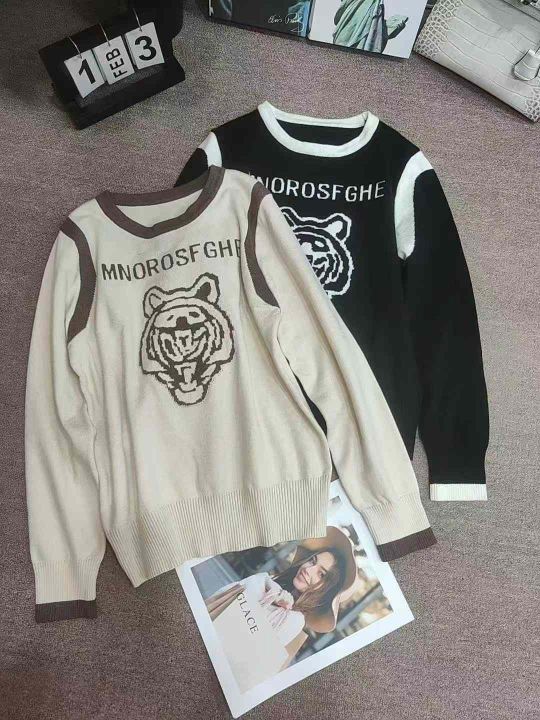 潮牌新款韩版高级感显瘦百搭虎头宽松套头毛衣,独立包装,均码,695件,清7.8,分➕1