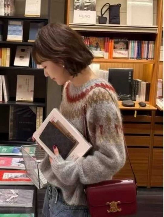 费尔岛毛衣慵懒辣妹风针织衫高级感纯欲上衣,独立包装,主色红色,60件,清...