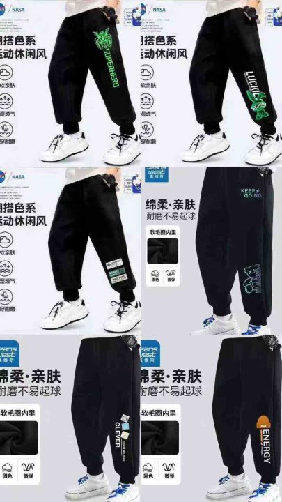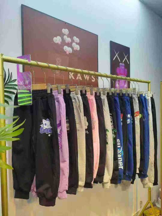 665件春秋季男女中大童印花束脚休闲卫裤 鱼鳞棉布,很多图案,码数110-170 货品干净防水袋装。