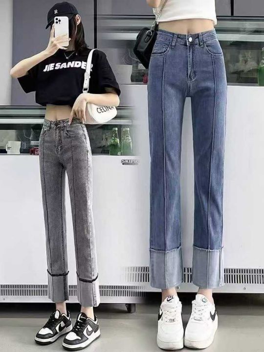 欧货港味高腰显瘦烟管弹力牛仔裤,整款2色,独立包装...