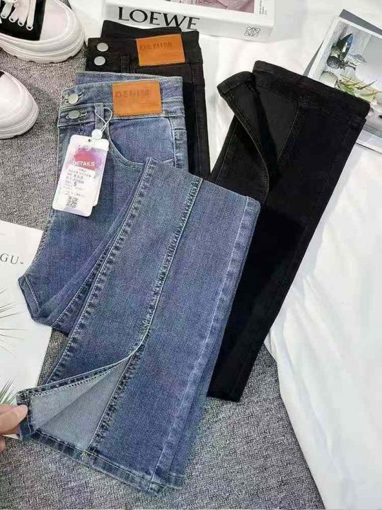 秋季新款高弹力洗水棉开叉高腰显瘦牛仔喇叭裤,独立包装带吊牌,码数XS--2XL码,570件,全清10.8元超低价秒杀!分货加一!