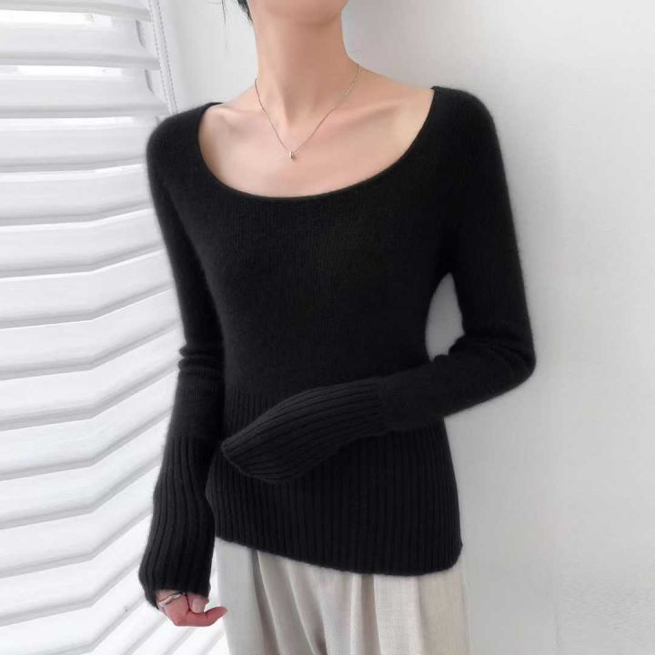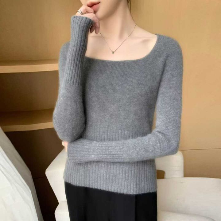 秋冬新款韩系方领净版简约包芯纱套头毛衣,独立包装,...