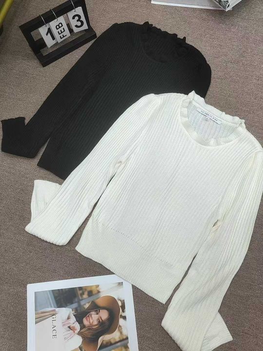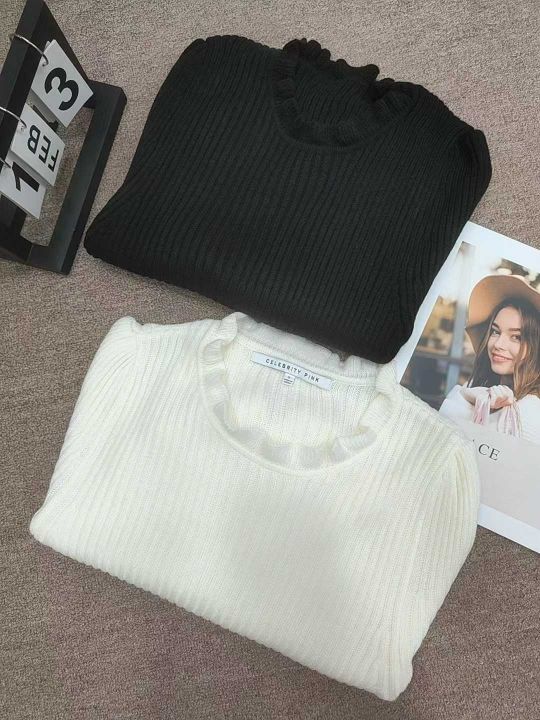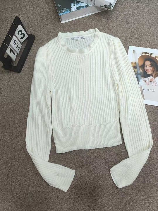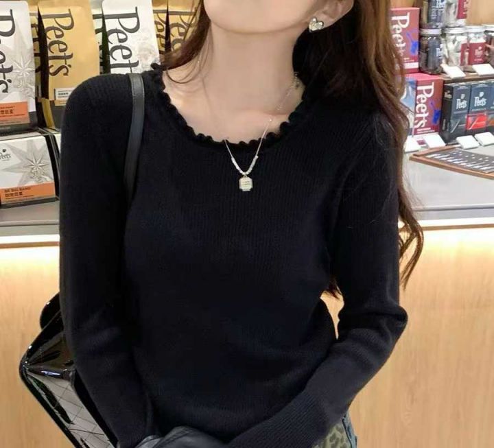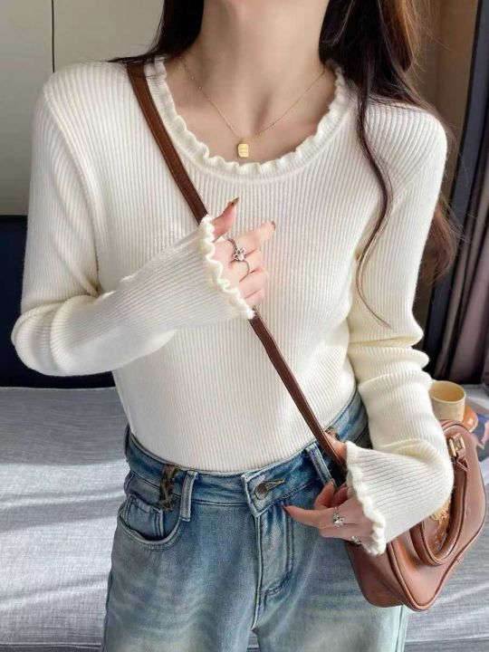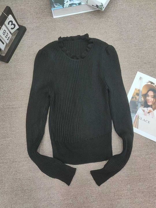 秋冬荷叶领针织衫女高腰短款长袖毛衣新款修身减龄打底衫内搭上衣,独立包装,48件,清5.8