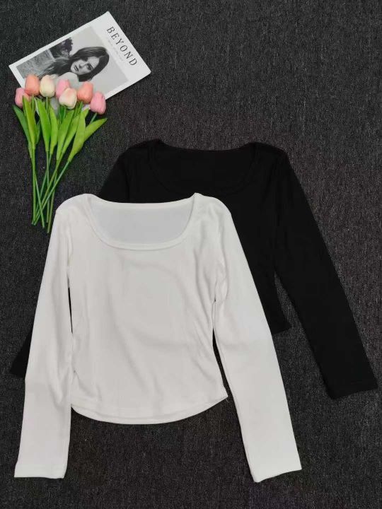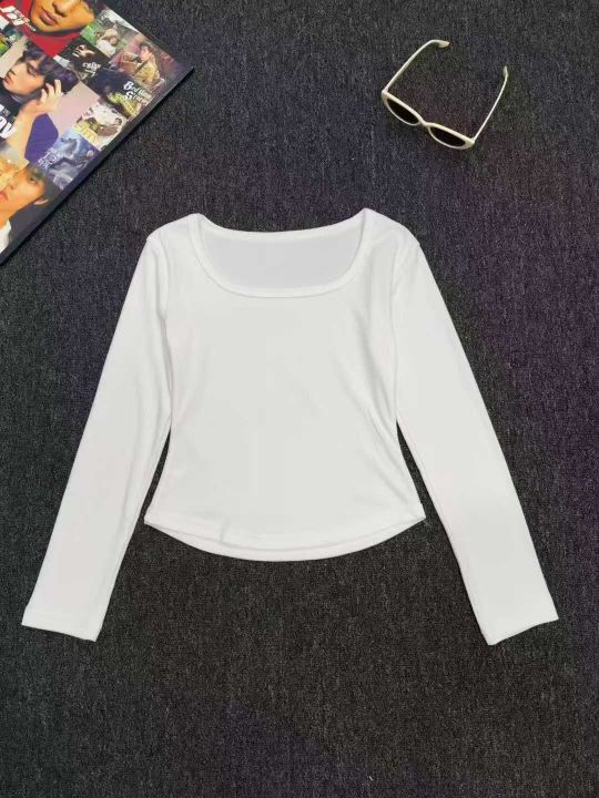 数量:890件,全清3.5,分货+0.5,2025新款靓妹U领打底衫,辣妹百搭显瘦长袖T恤,有独立包装,码数:M~3XL