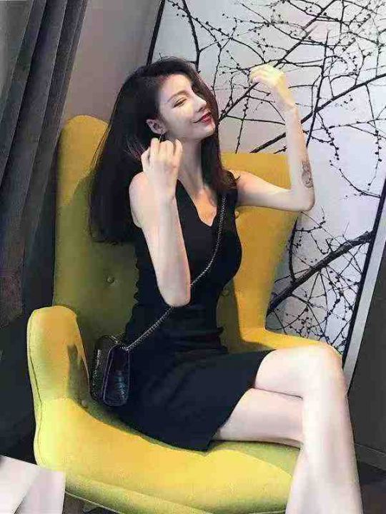 早秋新款法式纯欲性感辣妹弹力修身包臀黑色背心吊带针...