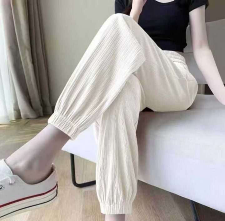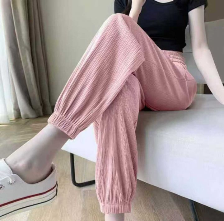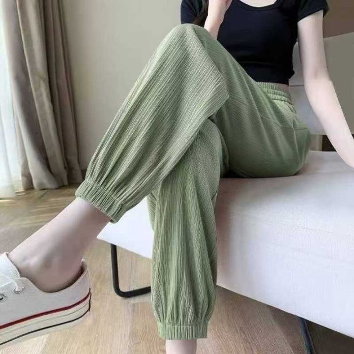 清5000条,冰丝束脚运动裤女夏季薄款防晒小个子灯笼裤九分防蚊裤,夏季薄款高腰宽松垂感百搭束脚裤小个子休闲灯笼裤,码数1 2 3 4 ,可清可分。