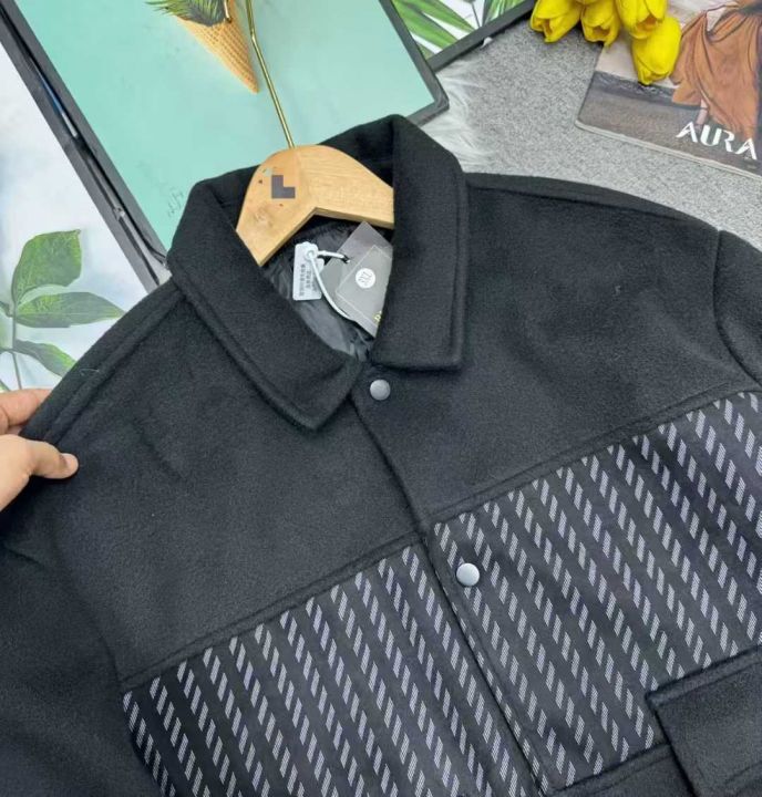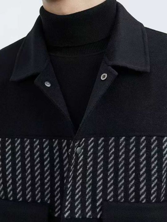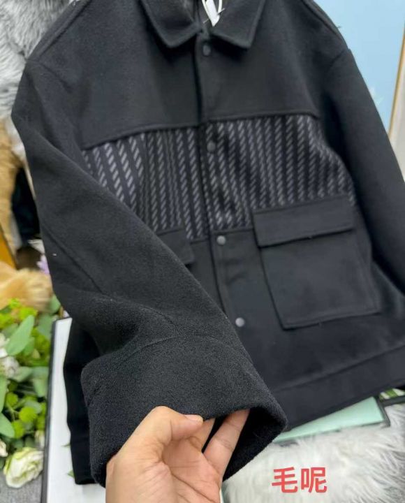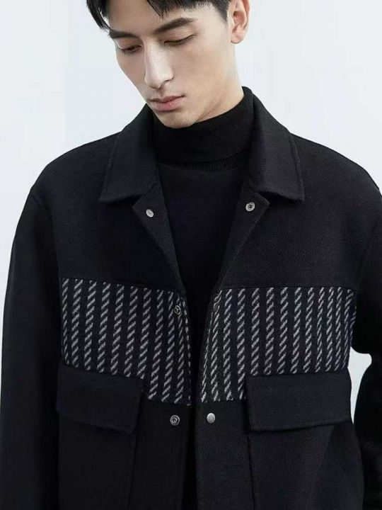 全清价24.9元男士拼条纹设计呢子夹克秋冬休闲宽松毛呢...