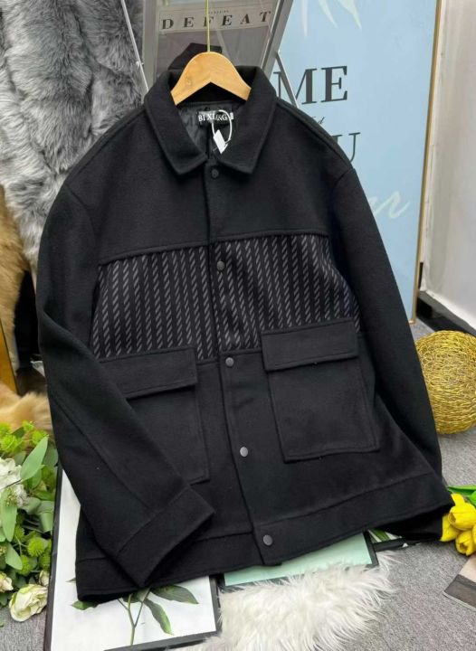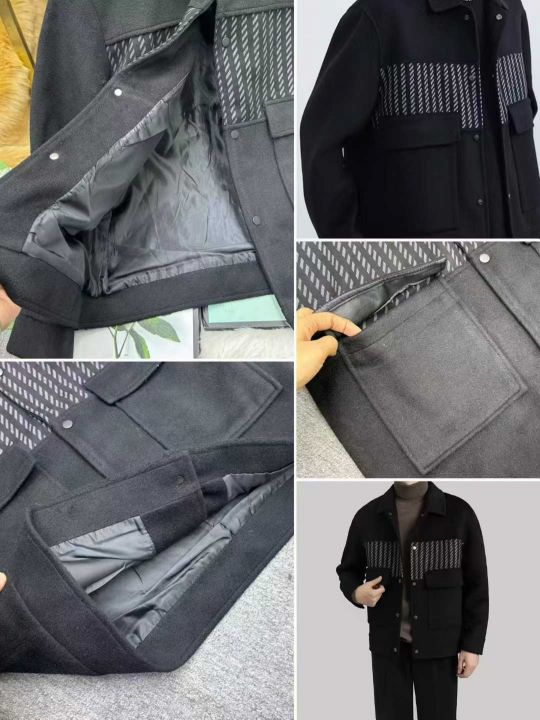 男士拼条纹设计呢子夹克秋冬休闲宽松毛呢外套,独立包装,码数M-3XL,数量161件,质量面料可,货号929#27