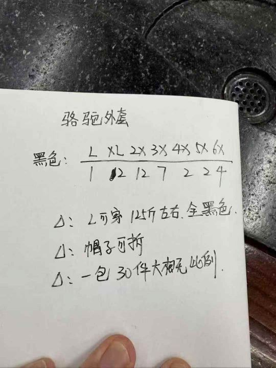 亏本处理45米,高品质,骆驼加绒加厚棉衣,一包30件,尺码有大概清单,2.3加比较多,全部黑色,质量好,性价比高,超级好货,需要的联系