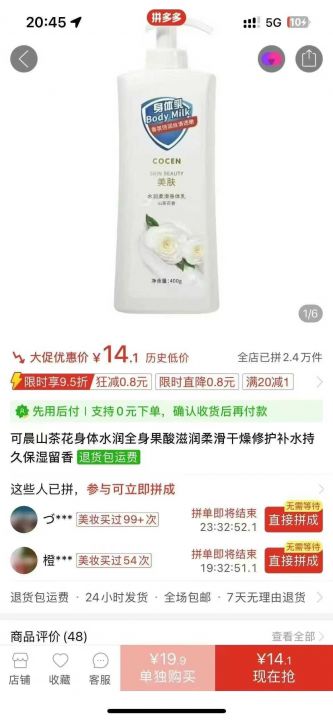 身体乳,400g, 日期26年10月,1900瓶左右, 1.8元亏本处理!