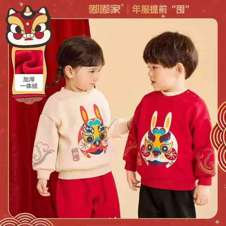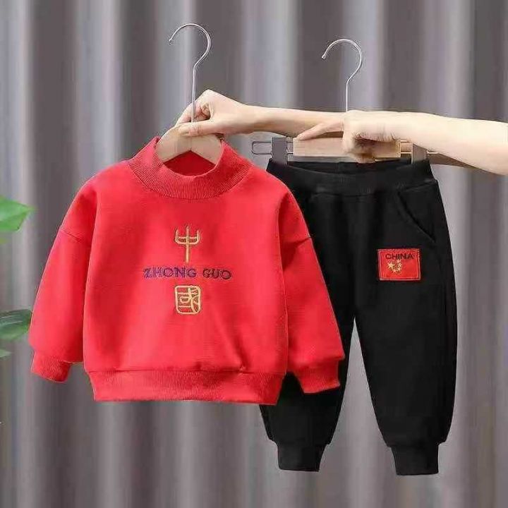 16.9 童装国潮加绒卫衣套装红色套装为主 实体店品质 3...