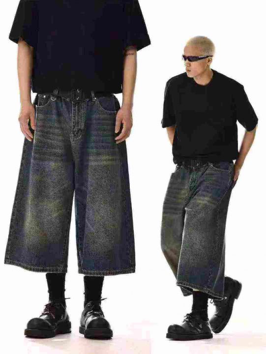 863款美式复古水洗做旧阔腿牛仔裤男女潮牌显瘦百搭垂感复古色七分裤子,独立包装带吊牌,28-36码,540件,全清8.8