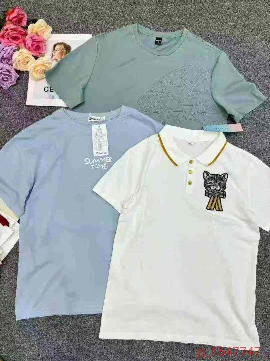 彩色纯棉均码大版短袖T恤 800件左右 图案多独立包装带吊牌 80-150斤左...