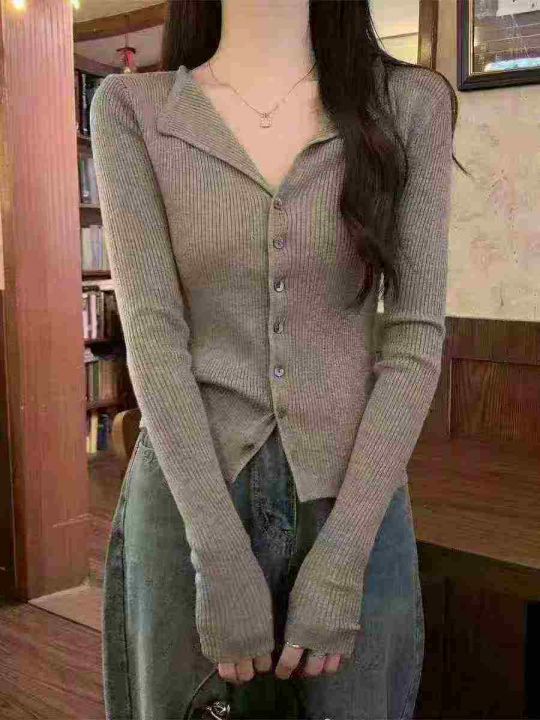 秋装新款v领针织内搭开衫女修身显瘦高级感毛衣打底衫2...