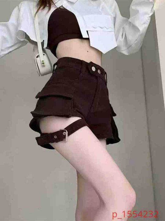 夏季新款高弹力女装多袋设计款工装牛仔短裤,独立包装带腰卡,码数L、XL码...