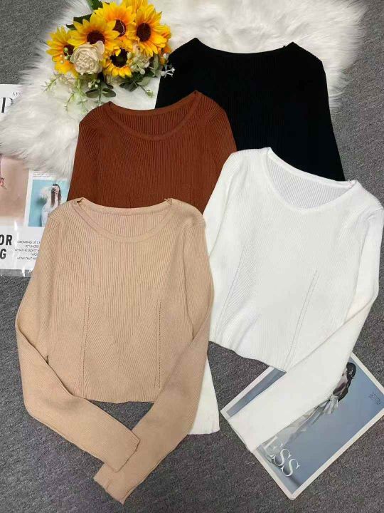 秋季新品别致辣妹短款圆领包芯纱针织套头毛衣,独立包装,均码面料软糯舒适...