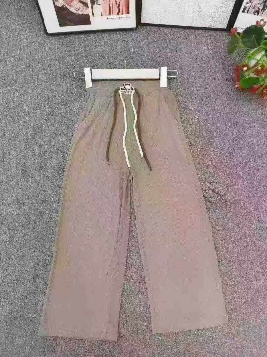 品牌洋气中大童时髦运动休闲直筒冰丝裤,数量1000件左右,尺码110--160,整款四个色(白色居多) 面料冰凉垂感足,白色带内衬防走光,内里包边,拉链包装带吊牌,全清9.8分货➕1