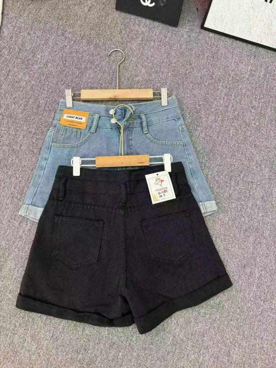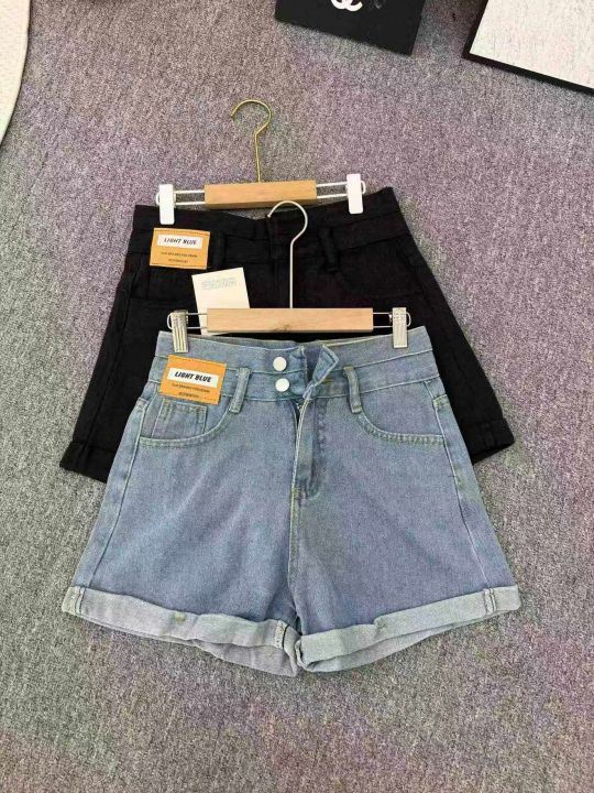 清8.8分货➕1黑色双扣高腰卷边牛仔短裤女2025夏季新款...