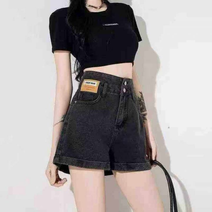黑色双扣高腰卷边牛仔短裤女2025夏季新款宽松显瘦百搭阔腿热裤子,数量316,码数XS-XL,独立包装,货品干净,黑色为主。
