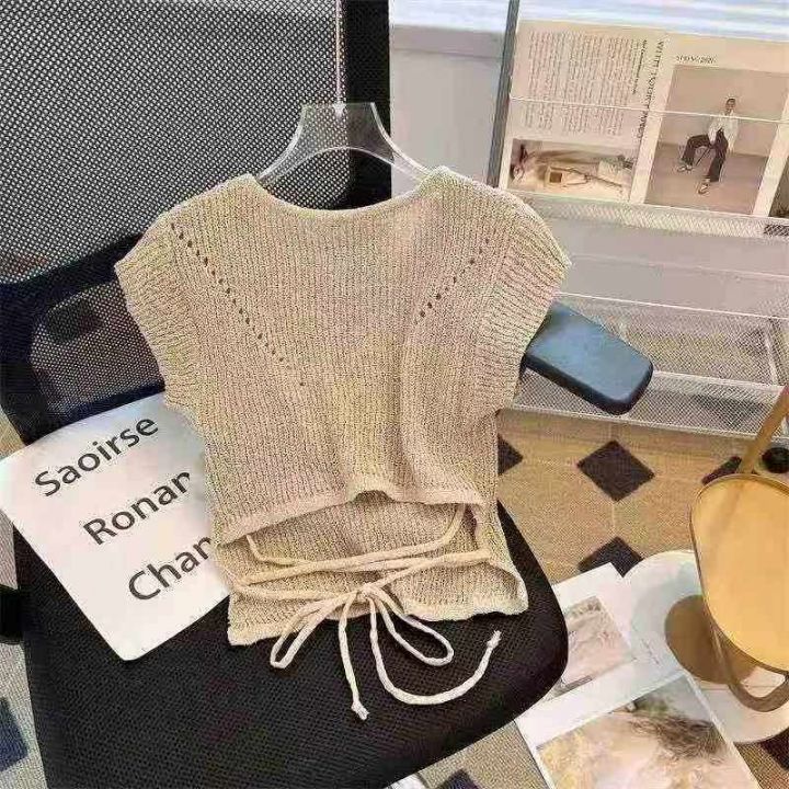 全清10.8元/清213件韩国定制早秋新款抽绳收腰针织罩衫...