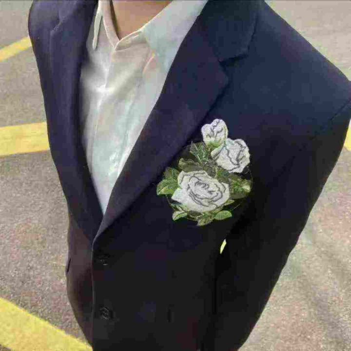 ️️全清17.8 国风新中式山茶刺绣设计感西装外套,单排扣西服外套宽松男...