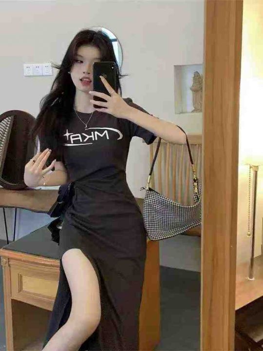 全清价7.9元女装时尚不规则开叉连衣裙字母印花高腰显瘦鱼尾裙中长裙,独立...
