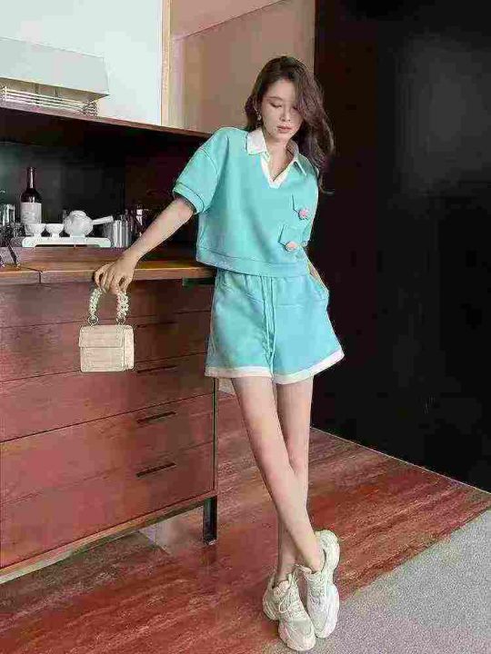 小香风套装炸街减龄高级感休闲运动服POLO领短袖短裤两...
