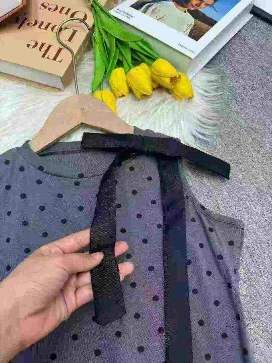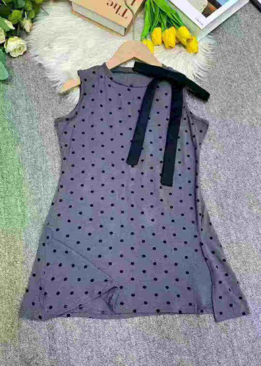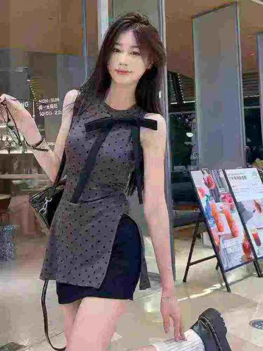 捡漏173件灰色波点时尚辣妹圆领无袖背心纯欲风蝴蝶结开叉不规则上衣,独立包装,码数1-4码,(货号920#68)