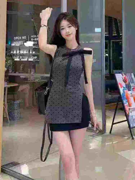 捡漏173件灰色波点时尚辣妹圆领无袖背心纯欲风蝴蝶结开叉不规则上衣,独立包装,码数1-4码,(货号920#68)