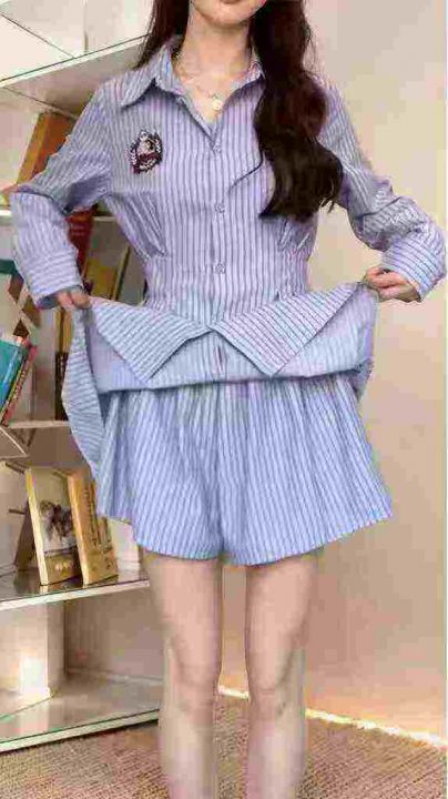 捡漏42套时尚爆款polo条纹学院风长袖衬衫套短裤套装,独立包装,码数1-4码,大货蓝色为主,货号930#103