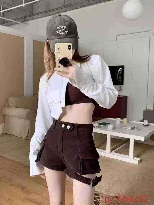 夏季新款高弹力女装多袋设计款工装牛仔短裤,独立包装...